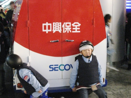 這是兒子在扮保全,保護運鈔車的畫面。雖然樣子鬼鬼祟祟地,但可不是搶劫!