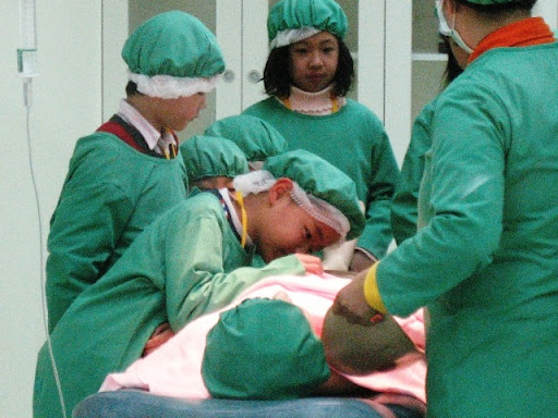 這是兒子在扮外科醫師,在動手術的畫面。據兒子表示,他的工作是麻醉醫師,豈不是跟侯文詠一樣?